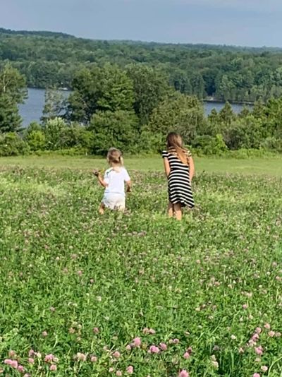 Why we love it - This photo of two little girls wandering through a field of clover brings back childhood memories and puts us all in a cheerful mood. The girls are exploring what nature has to offer on one of those perfect summer days, with Wolfe Lake in the background. While the resolution of the photo is not particularly high, the composition, with the children strolling through the sunlit grass, is marked by a beautifully warm light that softens the vista.