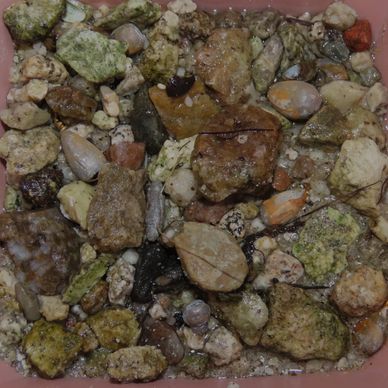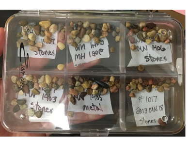 This is an actual sample of the lakebed in Wolfe Lake. Lead tackle was added to illustrate how difficult it is to identify grit from lead.